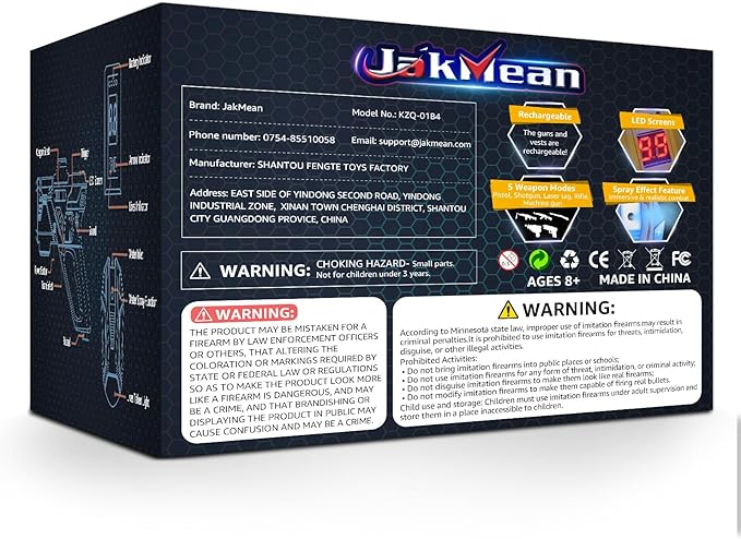 - Mulit-player, More fun : Up to 4 teams can play in the battle! JakMean Laser Tag with lifelike shooting sounds and 5 weapon mode(Pistol,Shotgun,Laser tag,Rifle,Machine gun)to suit any situation. Guns & vests vibrate & light up when hit, alerting the injured party to run for cover! provide an unparalleled gaming experience.