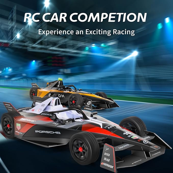 - 【 Intuitive Remote Control 】 Equipped with 2.4GHz remote control, you'll never get any radio interference, which enables multiple cars to race together at the same time and place. The included remote control handle is designed for ease of use, allowing operators to maneuver the car with precision, simulating the experience of driving the actual Formula Porsche. It's an engaging remote control car for adults that provides an authentic driving sensation.sensation.