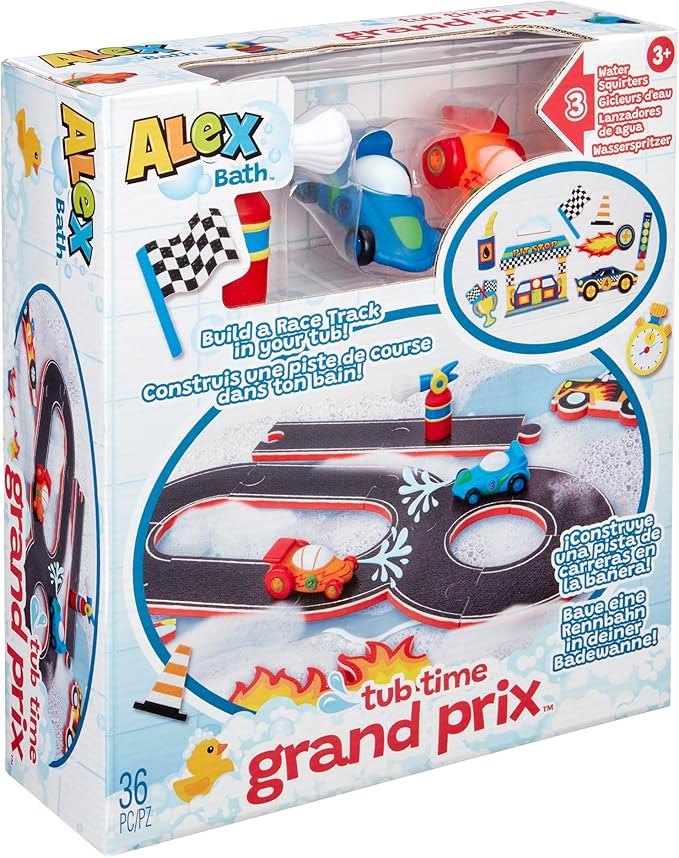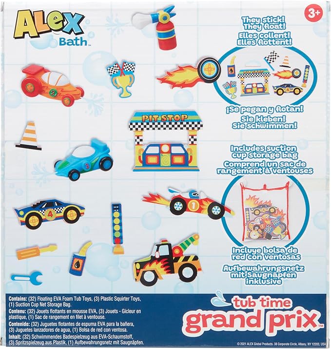 ALEX: Tub Time Grand Prix - 32 Piece Bath Time Toy Set, Car & Racetrack Playset, Foam Pieces, Water Squirting Cars, Water Toy, Kids & Toddlers Ages 3+
