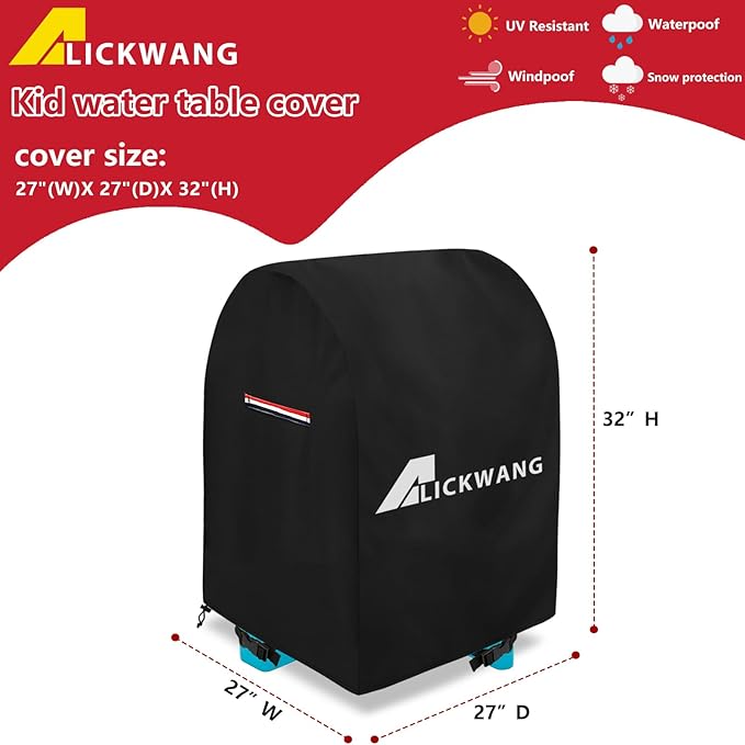- Water table cover size:The size of this water table cover is 27"Lx27"Wx32"H,perfect compatible with Little Tikes foldable water table .Please measure the size of your kids water toys before purchase.