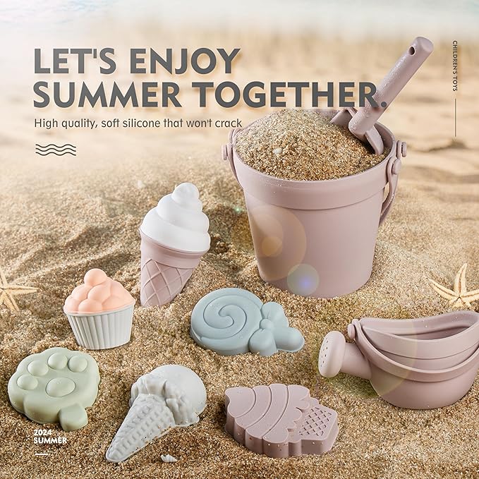 - Versatile:This set contains all the beach essentials for keeping your children engaged for hours.Let your children use the silicone molds to make fun shapes in the sand.Easy to clean,you can also use them in the bath