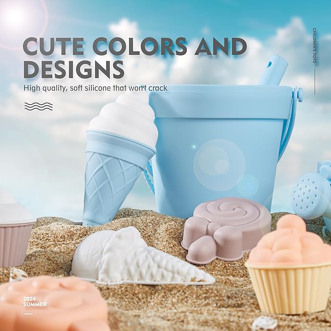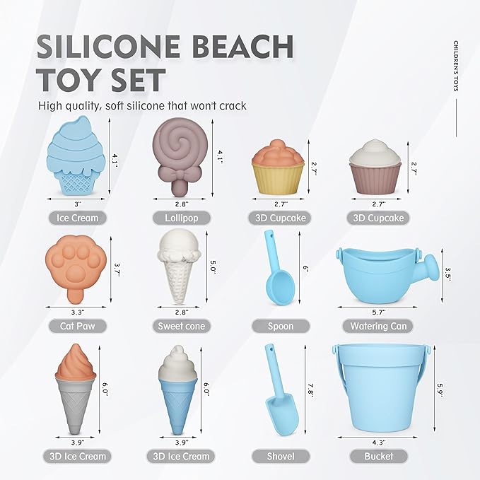 - Versatile:This set contains all the beach essentials for keeping your children engaged for hours.Let your children use the silicone molds to make fun shapes in the sand.Easy to clean,you can also use them in the bath