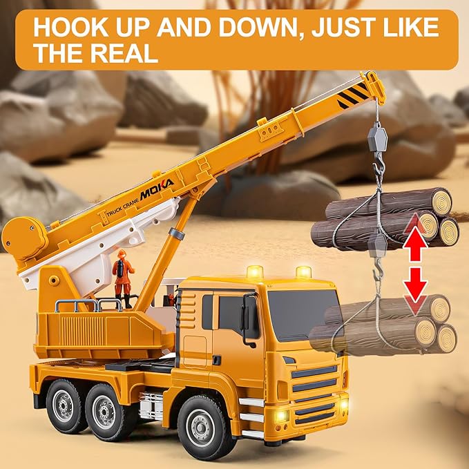 13 Channel RC Crane Truck, 2.4G Remote Control Crane Toy Construction Vehicles with Lights, Sounds, Hook Up and Down, 1:18 Large RC Truck Car for Kids Boys 16.5"