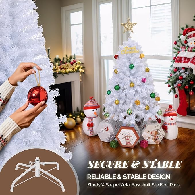 - 【PERFECT DECORATIONS】- You can add Christmas hats, lights and garlands, etc., exclusive to your DIY Christmas tree. White Christmas trees are available for holidays, party and commercial. Let it creates a joyful and festive ambiance to your home.
