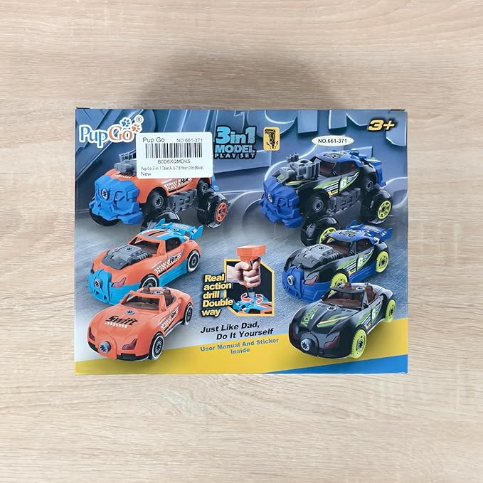 Pup Go 3-in-1 Take Apart Car for Boys with Electric Drill, 43Pcs Construction Toy Truck, Build Your Own Car with Play Tools, Ideal STEM Present for Kids Children Ages 3 4 5 6 7 Year Black