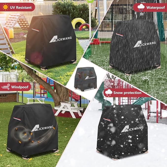 - Windproof designs:The outdoor water play table cover has designed 4 buckles and a drawcord at the bottom,which can fix the water table cover to the table legs to prevent it from being blown away by the winds