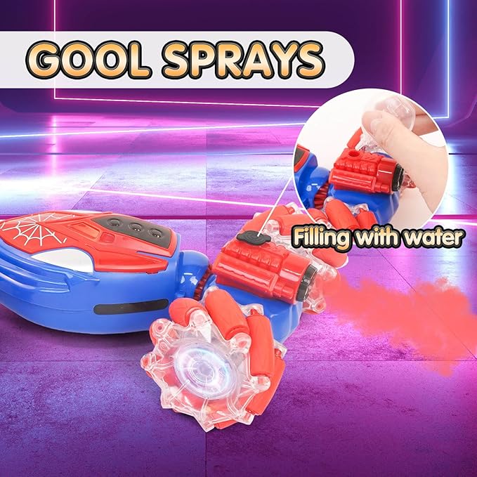 - 【360° Rotation, LED Light & Music & Spray】The 1:18 scale gesture sensing wrist racing car has all-direction tire can move in all directions,The lights of multiple colors are constantly changing and flickering, presenting a dazzling and cool visual effect at night, and the lights also play a role in lighting.Giving players a better night playing experience