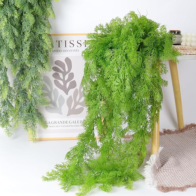 - Maintenance-free: These faux hanging greenery will glow all year round without any maintenance and are a cost-effective alternative to live plants. Environmental dirt can be washed away with water and they are as pretty as new. The colours will not fade even after long term use.
