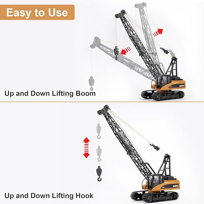 - 💪MIGHTY & FLEXIBLE: This 1:14 scale crane is fitted with precision gears, strong mounts and tough ropes, which allow it to keep traveling steadily while lifting heavy loads over 1KG+!
