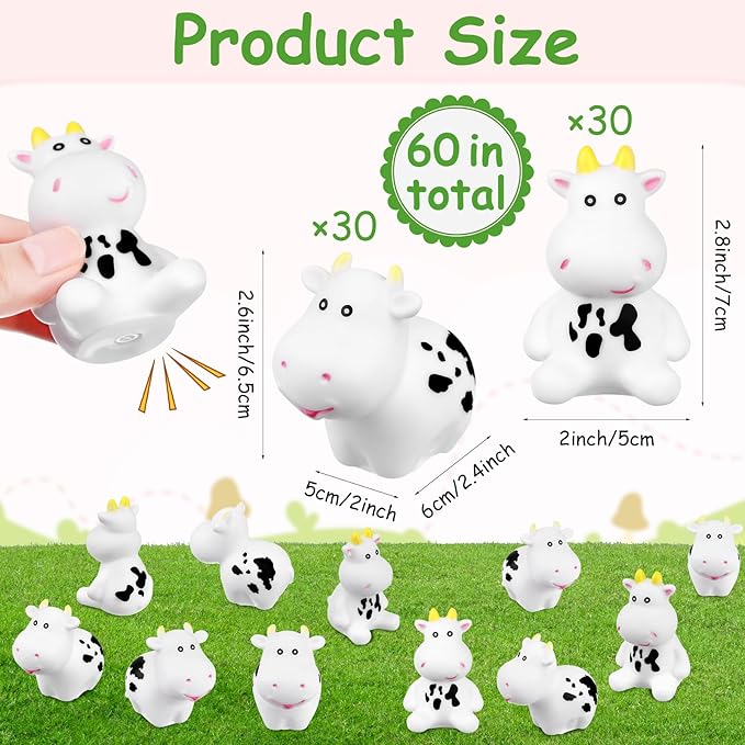 - 【Fun Water Squirting Bathtime Play Set】You will get 60 pieces of cow rubber bath toys, sufficient quantity for you to use in party, bath, gift giving.