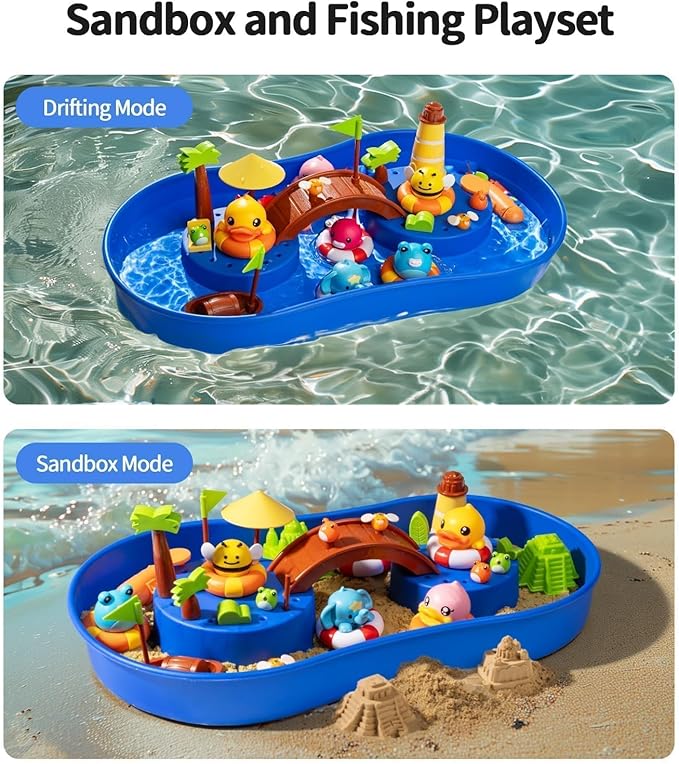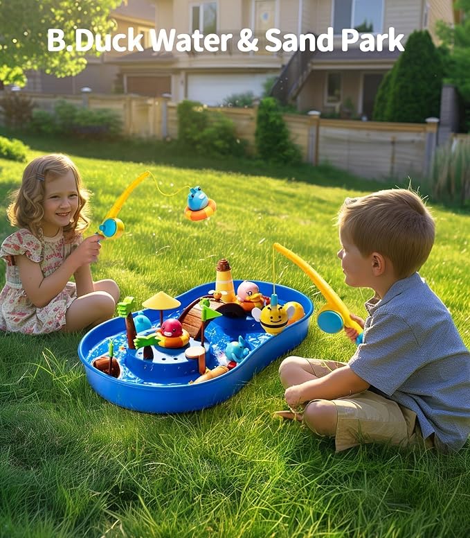 - Abundant Accessories: Includes fishing rods, boats, sand tools, kinetic sand, and fun characters like B.DUCK and Froggy, offering endless play possibilities