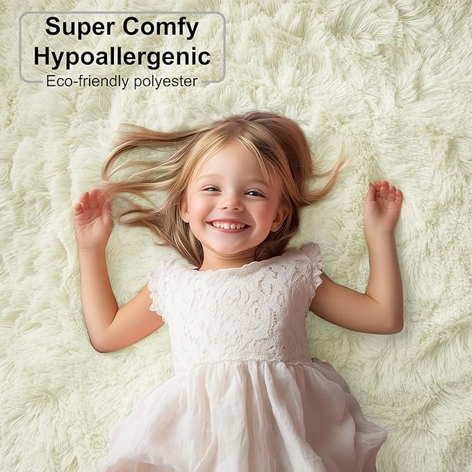 - 【 Safe Materials & Good Gift】 This super soft, velvety carpet is made from eco-friendly polyester, does not contain any harmful substances, no smell, no shed, which is protecting floors from stains and perfect for homes with children and pets.The plush texture offers comfort for barefoot walking and tummy time, the rich color choices and furry appearance add fun to any room-Also a good gift for grandson, granddaughter, little girl boy, baby girl boy, teenage teen girls, they will love it.