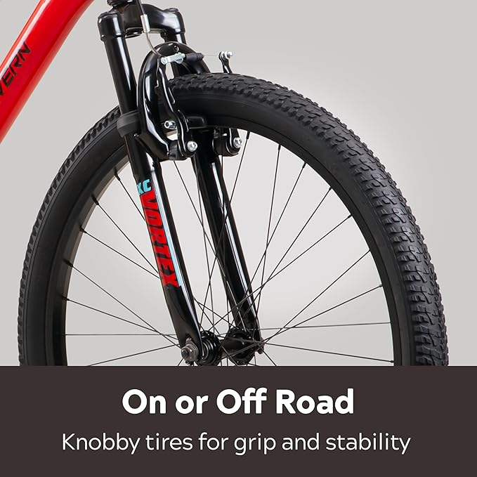 Cavern Mountain Bike for Youth or Adult Boys Girls, 7 or 21-Speed Twist Shifter Options, 20/24/26-Inch Wheels, 11 to 17.5-Inch Steel Frame, Front Suspension, Kickstand Included