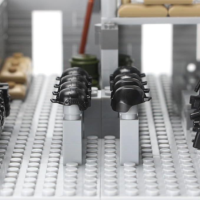 - Army Accessories: 17pcs Guns, 12pcs Knee pads, 6pcs Vests, 6pcs Helmets, 6pcs Backpacks, 4pcs Masks, 4pcs Shoulder pads, 4pcs Headphones, 2pcs Belts, 2pcs Wrench and 1pcs Heavy machine gun, provide your soldier figures with enough weapons and equipment to create a well-equipped team to carry out their battle plans