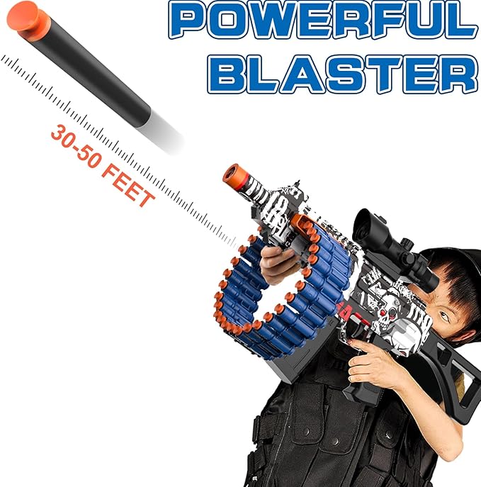 - Impressive Shooting Distance: With the ability to rapid fire to 30-50ft. Leave your competition in awe with this unbeatable full auto foam blaster!