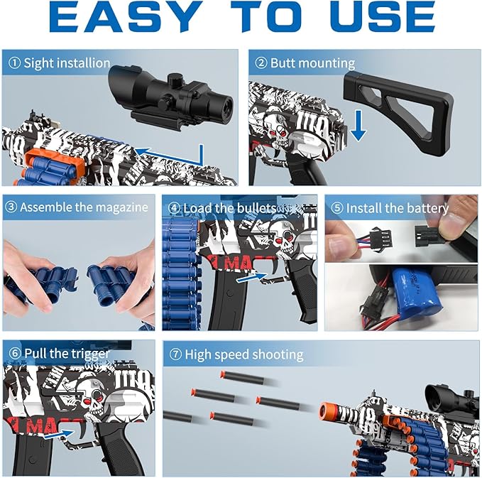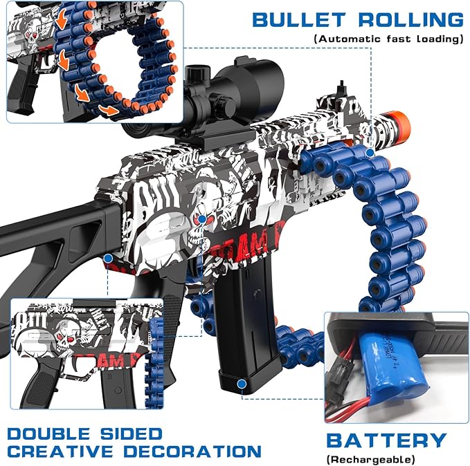 - The True King of Toy: This big electric toy boasts a "Gatling" style with 30 darts capacity. The automatic belt rotation loads the next dart after each shot, giving you an unparalleled advantage, making you the ultimate king of the battlefield.