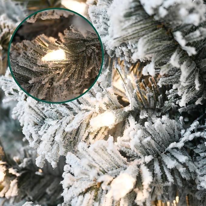 Prelit Flocked Artificial Full Christmas Tree 5FT with 1528 PE PVC Tips, Premium Snow Pre-Lit Holiday Xmas Tree with 300 UL Incandescent Lights, Foldable Base for Home Office Party