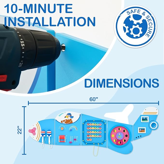 - EASY TO ASSEMBLE & DURABLE: Our busy board arrives fully assembled with pre-drilled holes and screws, making it easy to mount in under 5 minutes. Its durable construction ensures it stands up to active use in any setting.