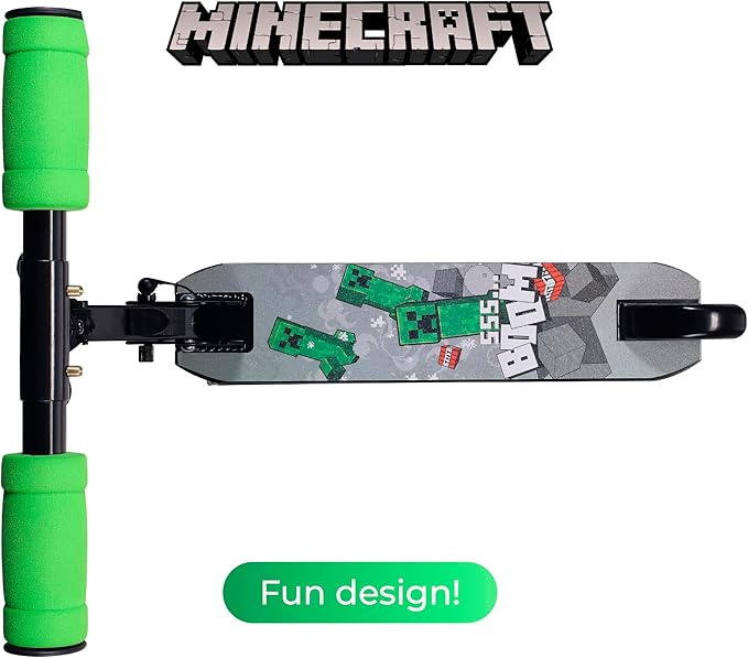 - Easy to Use and Carry: The lightweight Minecraft scooter requires no assembly and is ready to ride straight out of the box. Kick the Folding Mechanism to fold down by Foot, Press the Folding Mechanism and Push T-bar forward to unfold. The folding process is super easy and no tools needed! This scooter is perfect to pack in the car and take anywhere on the go. Just what you are looking for!