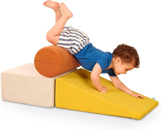 B. toys - Sensory Foam Building Blocks for Toddlers & Babies - 3-Piece Climbing Set with Cylinder, Ramp & Block - Machine Washable Covers with Easy-Grip Handles - Indoor Play Shapes for 12+ Months