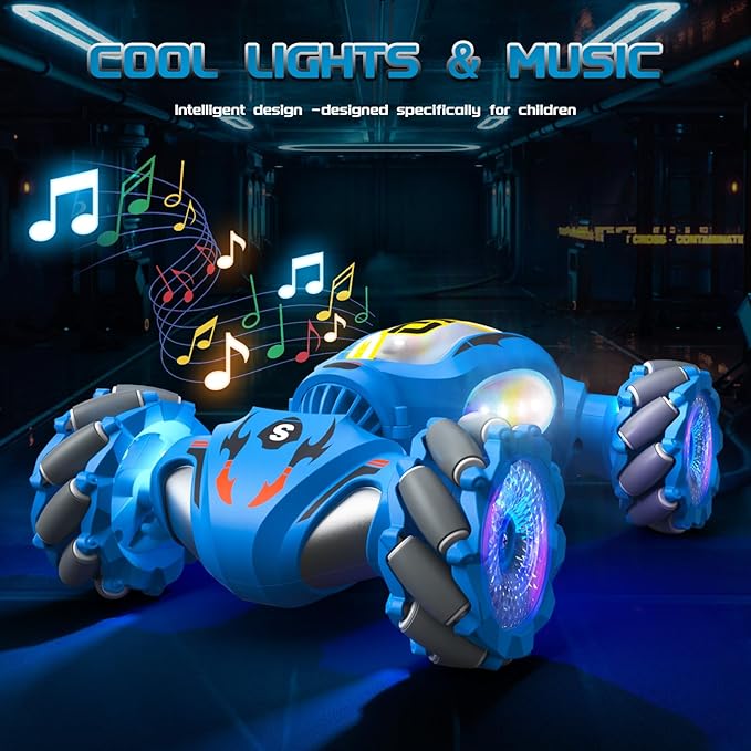 - Easy to Use with Dual Remote Control Technology: Experience driving an RC car with both a gesture control watch and a traditional remote control. The 2.4G technology is easy to operate and supports multiple players without interference. Maneuvers include 360° rotation, double-sided driving, forward, backward, left, and right turns