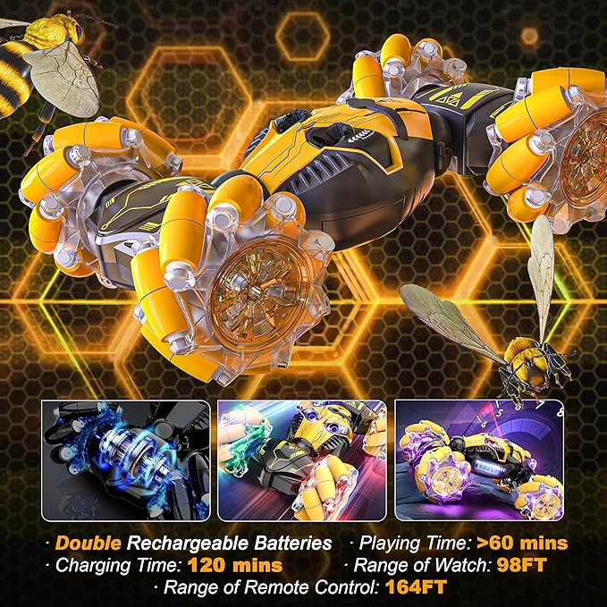 - Multi-terrain use: Thanks to its bionic spine design, hand controlled car switch between on-road and off-road modes to adapt to various terrains. In flat mode, hand gesture remote control car can be controlled and operated on both sides. Whether you are driving on smooth roads or driving on rough terrain, the toy car is ready for the challenge.