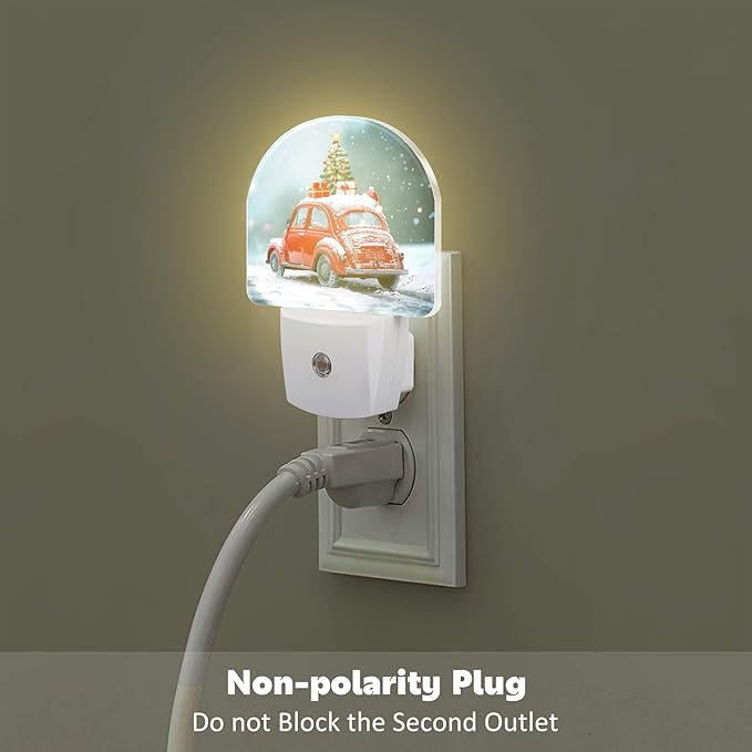 Vintage Christmas Red Car Night Light for Kids, Car Loaded with Gifts Christmas Tree Night Light Plug in with Dusk to Dawn Sensor,0.5w Energy Saving Nightlight for Boys Girls Home Decor