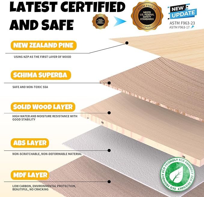 - CARE ABOUT QUALITY: We have strict requirements for all wood we use, No BPA added, non-toxic painting. Passed physical and chemical safety tests far beyond the ASTMF-963-23standards. Because it matters to kids' health.