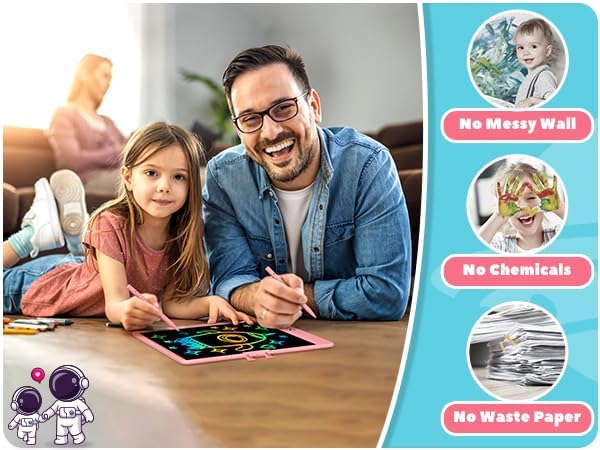 - EYE PROTECTION LCD WRITING TABLET: Adopts 2022 LCD pressure-sensitive technology and 16-inch LCD colorful screen. This doodle board toys without radiation, no glare, safe and comfortable even use for a long time. ENVIRONMENTAL: The battery of the writing and drawing tablet has 3-6 months battery life, can be replaced for cycle use, without charging or plugging in power. The drawing pad toys can provide about 100,000 writings, avoid waste of paper and pencils