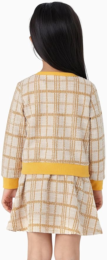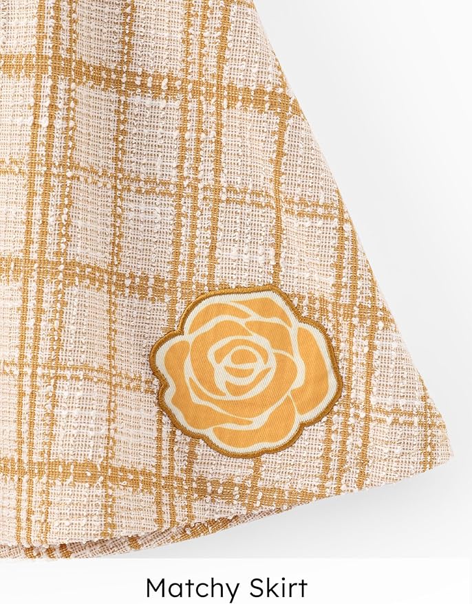 • Charming & Unique Designs: This delightful skirt set for girls includes a soft houndstooth jacket with princess graphics and pearl-style buttons, plus a matching plaid tweed skirt. The classic check pattern adds texture, comfort, and timeless elegance to any fall or winter outfit