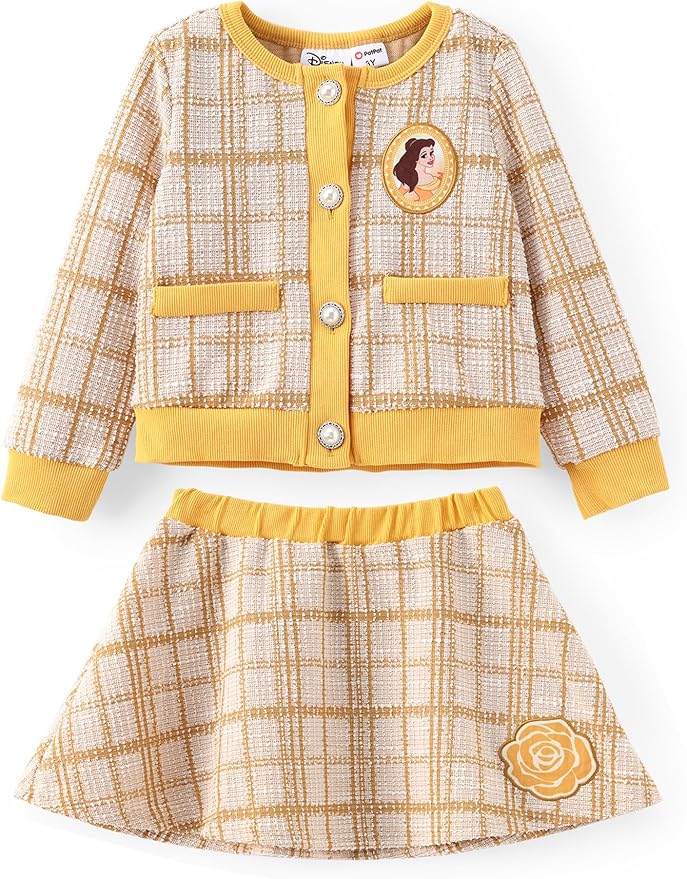 - Charming & Unique Designs: This delightful skirt set for girls includes a soft houndstooth jacket with princess graphics and pearl-style buttons, plus a matching plaid tweed skirt. The classic check pattern adds texture, comfort, and timeless elegance to any fall or winter outfit