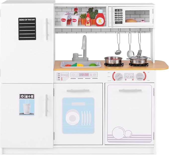 - 【Great Stability & Safety】Safety is the premise of fun. Designed with a splinter-free surface and rounded corners to protect delicate skin, our ASTM compliant and CPSIA certified kids kitchen playset aims to promote healthy growth and enjoyable playtime for your child.