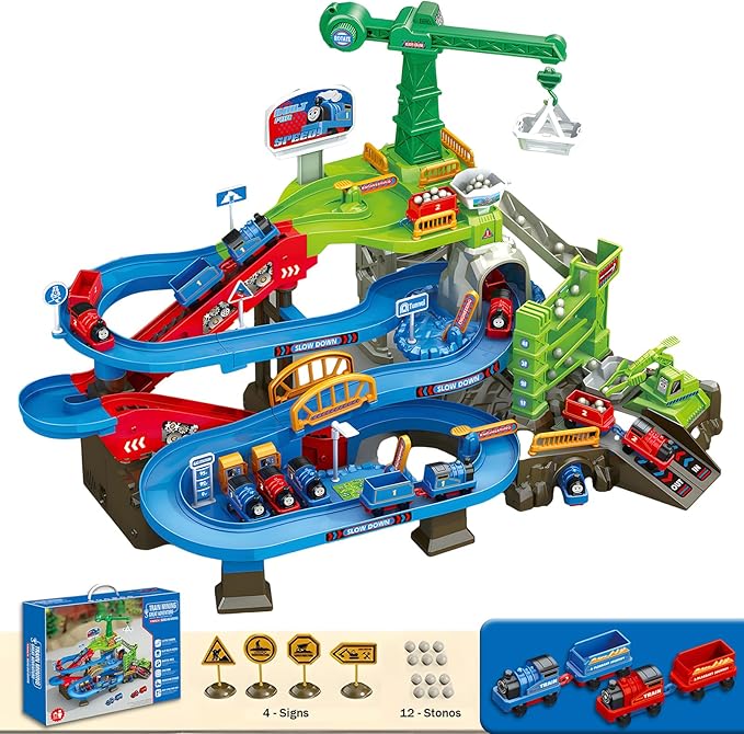 Construction Vehicle Toys Race Car Track for Kids Age 3-8 Train Set Best Birthday Gift with 4 Mini Engineering Cars