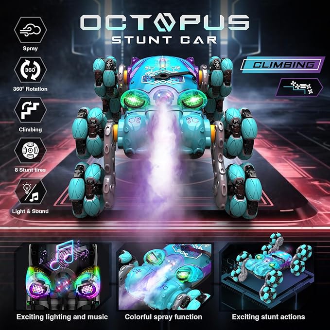 - Cool Spray Lights and Music: Watch in awe as your RC car comes to life with cool spray effects and vibrant LED lights. These features create a dynamic play experience, making every race or stunt show more exciting and visually captivating