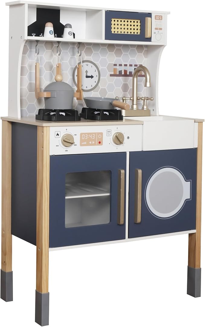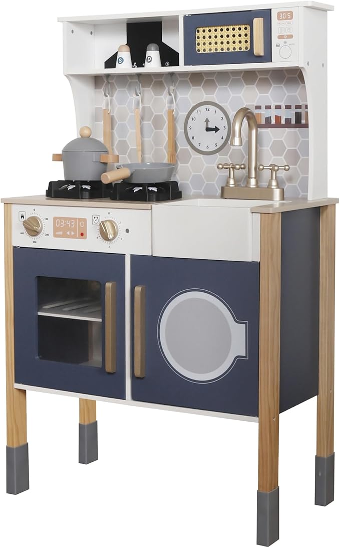 - ❥Toddler kitchen has enough storage space to cultivate children’s storage ability and develop a good habit of tidying things up. Perfect play kitchen for toddlers 3-8. The wooden toy encourages role-playing, problem-solving, and fosters a love for cooking and pretend play game