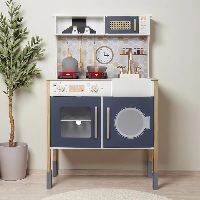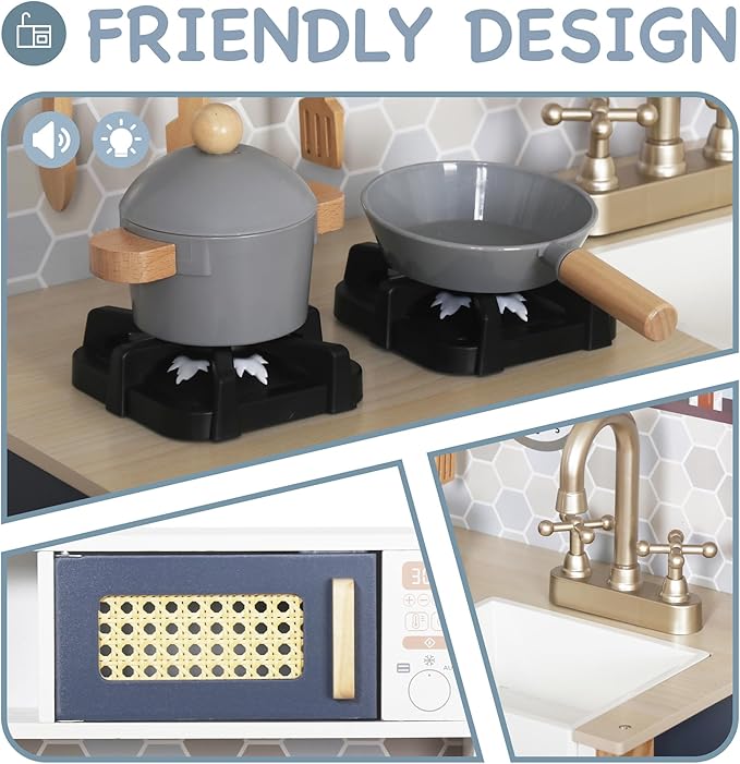 - 🎁Geat gift- Not only provides fun playtime for young children, but is also important for education. The perfect play kitchen for 3-8 year olds is ideal for creative role play toy and the perfect gift for kids.