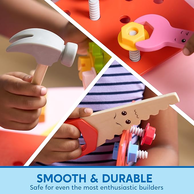 - Trusted Quality: Made from durable wood with a non-toxic coating, this tool set features a smooth, polished finish and rounded edges, ensuring it's safe and easy to grip for small hands. Its sturdy construction guarantees long-lasting use, making it a reliable addition to any playroom. Ideal for those looking for wooden toys and Montessori toys for 3-year-olds, it stands out among toys and gifts