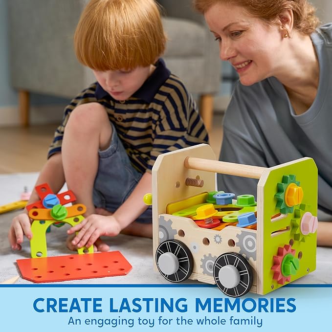 - Ideal Montessori Toy for Learning: The wooden tool box doubles as a toddler workbench, storage box, and carry case. With a portable handle, it becomes a handy suitcase, promoting organizational skills by encouraging children to store their toys after play. This makes it one of the best Montessori toys for 3-year-olds