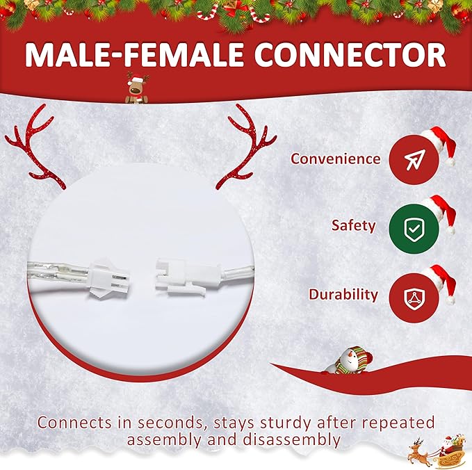 - [Weather-Friendly Design] This freestanding holiday display is equipped with 16.4FT water-resistant cord and lights, the light bulb is waterproof and snow proof, so you don't have to worry about safety issues. Although, it has 120 LED lights, it’s still energy-saving. Besides, pre-strung fairy lights remain cool to the touch in constant warm white.