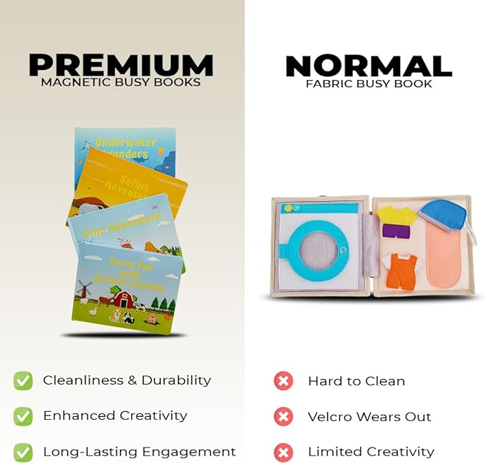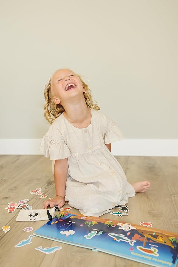 - Practical and Safe Magnetic Busy Book: Say goodbye to hook and loop and enjoy our new design with magnetic pages! This preschool busy book has 8 sturdy magnetic pages and 29 ocean-themed figurines that stick firmly to the page, ensuring a mess-free and safe sensory experience!