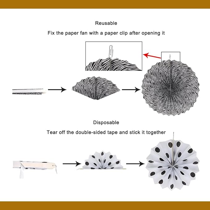 - 【Easy to Use】Triangular pennants,circle paper garland, and hanging swirls can hang anywhere you need. Each paper fan can be fixed with double-sided tape or paper clips. Pom poms require a little patience to slowly unfold it, and you can refer to the operation in the picture.