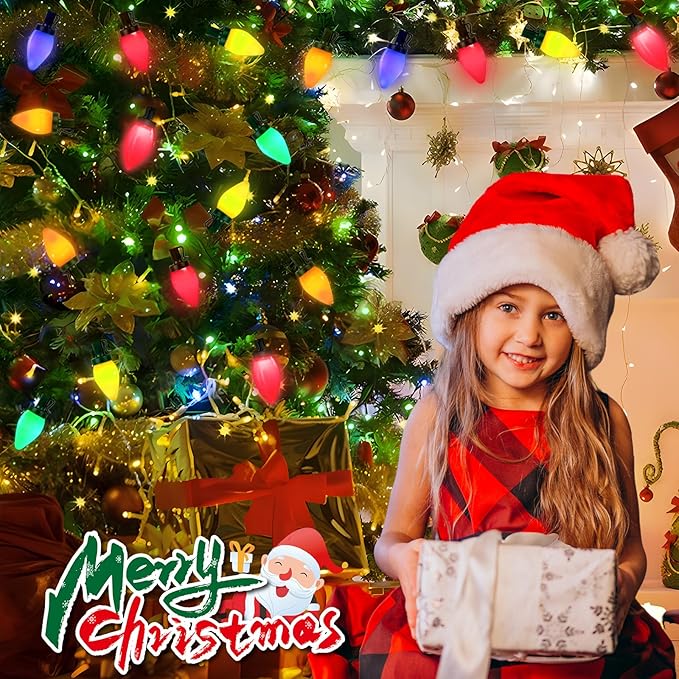 - 【 Long Lasting & Energy Saving】C7 LED Colorful Christmas String Lights are more energy-efficient than traditional lighting, consuming less electricity and having a longer lifespan, reducing replacement and maintenance costs. C7 LED String lights are easy to install to meet creative decoration needs.