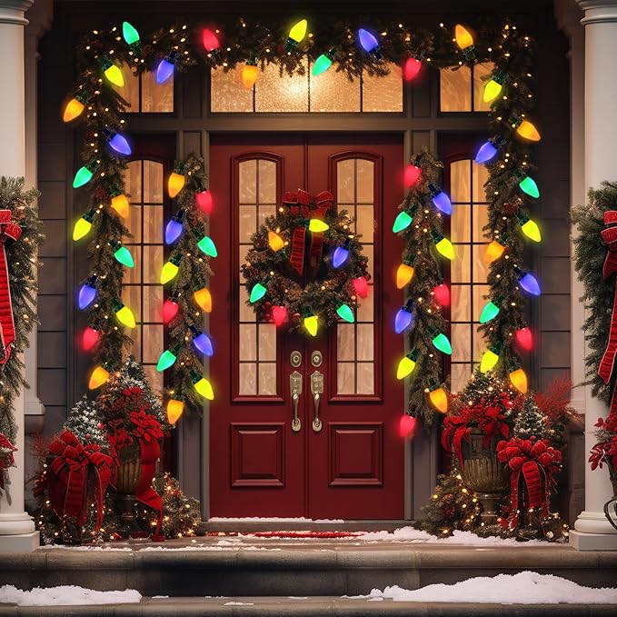- 【Wide applications 】C7 Christmas Lights Suitable for daily scenes of indoor and outdoor decoration (gardens, lawns, walls, yards, bedrooms, shopping malls, weddings, birthdays, parties, cafes, etc.). All kinds of festivals (Christmas, Halloween, Thanksgiving, etc.) are necessary decorations to create an atmosphere.