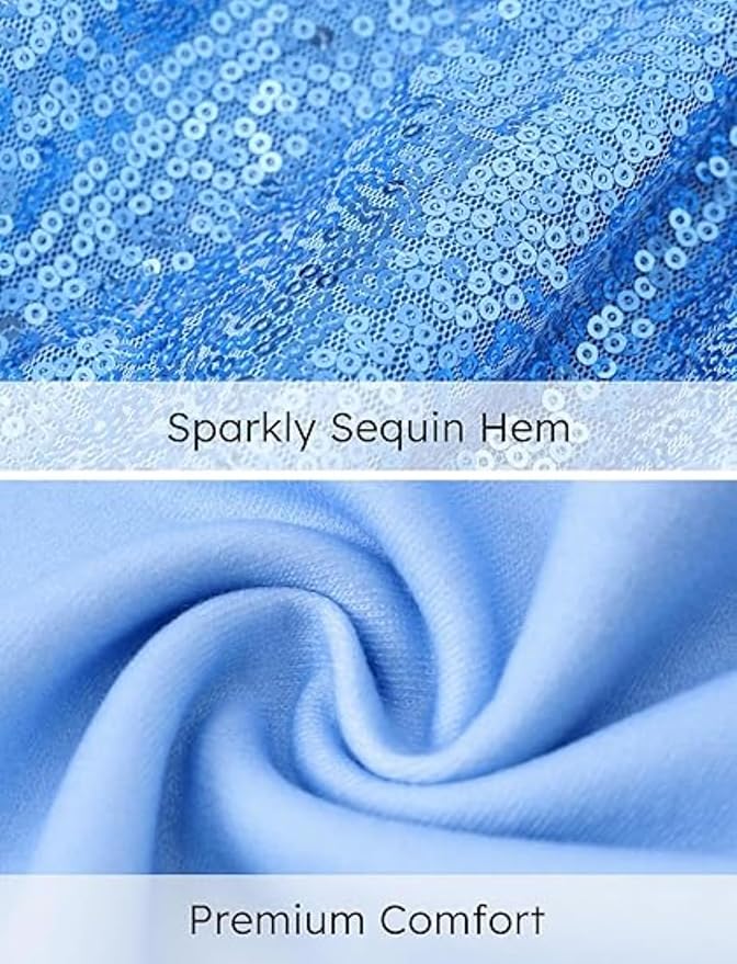 - Charming and Unique Design: The dress features a cozy sweatshirt top paired with a sparkling mesh skirt covered in blue sequins. Elsa’s iconic icy blue gown contrasts with the shimmering skirt, creating a playful and festive look perfect for both casual and special occasions