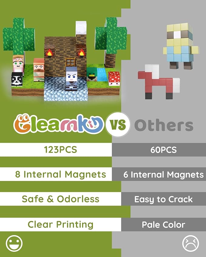 - Safe & Sturdy Construction: Gleamkid magnetic blocks come with 8 internal magnets for enhanced stability and flexibility. Made from high-quality ABS material with sealed edges and a durable design, these magnet blocks are safe. Magnets are strong enough to build tall structures. Blocks pieces are compatible with other magnetic blocks.