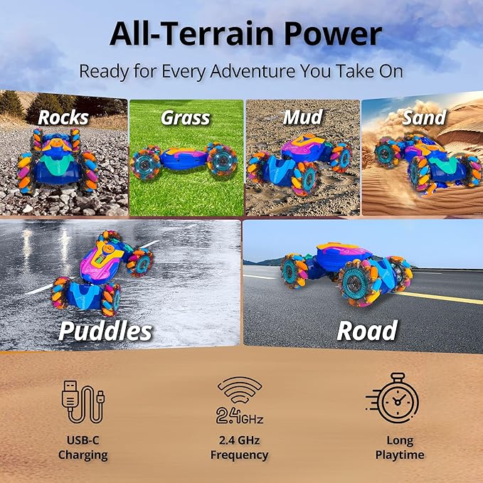 - All Terrain Driving: Conquer any terrain with our toy cars for boys age 8-12, remote control car for kids, cool car gifts, gesture rc car. Designed to handle dirt, sand, and grass, these cars provide endless outdoor fun for kids.