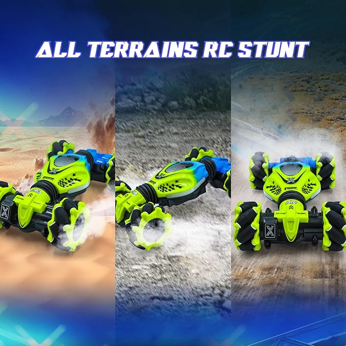 - 4WD Gesture Sensing Stunt Car:This rc stunt car can drive and drift in all directions, 360° rotation, 45° climbing, snaking, double-sided flip, twist into off-road and on-road modes.children to operate this off road stunt car via 3 senstive control modes easily. Loads of fun for your kids.