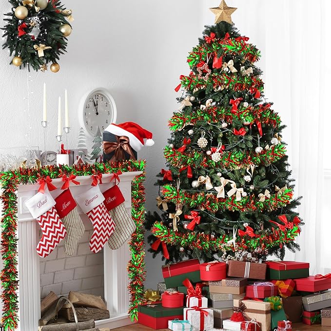 - [Christmas Tinsel Garland Decoration] Total 50FT, Christmas tinsel garlands, soft fashionable tinsel garlands, reflecting the sparkle to add to the festive atmosphere.