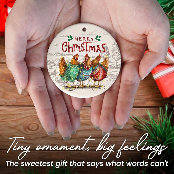 OASSIE Chicken Ornaments for Christmas Tree - Ceramic Christmas Ornaments 2025 - Chicken Ornaments for Xmas Tree, Rustic Home Decor, Rooster Gifts for Women Men Family Friends