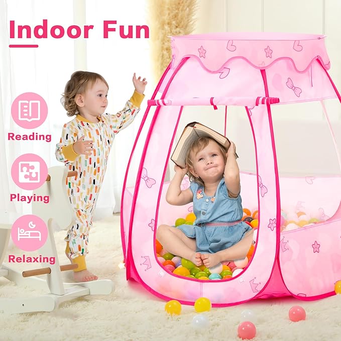 - Pop Up Princess Toy: The automatic pop up design of the ball pit for babies makes it open in seconds and no tools required. Save your assembly time and energy. Our toddler girls toy is lightweight and portable that can be taken to parties, picnics, parks, daycare, school, carnivals, sleepovers. It is the best birthday gift for for girls